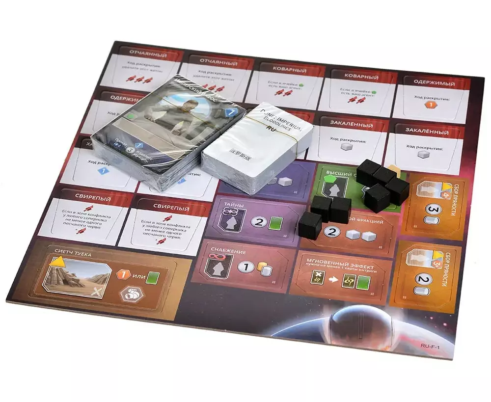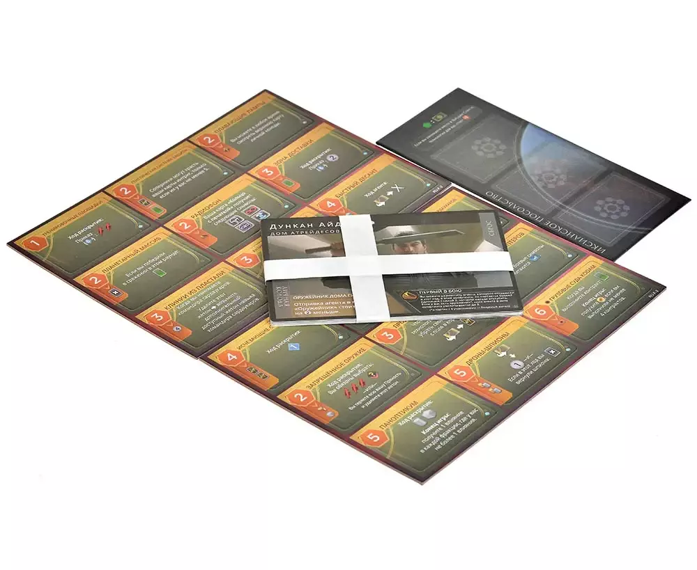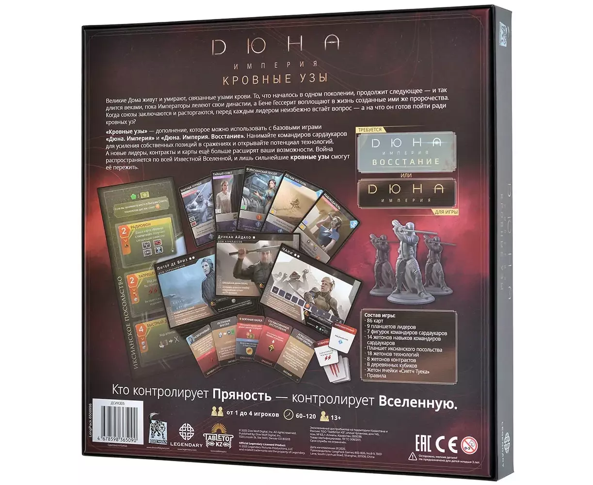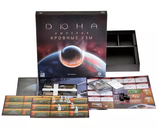 В дополнение «Кровные узы» входит мини-дополнение «Технологии», которое открывает доступ к устройствам и технологиям планеты Икс. Вы можете использовать его отдельно от мини-дополнения «КООАМ» или вместе с ним. Также оно сочетается с базовой версией игры «Дюна. Империя» и его дополнениями.