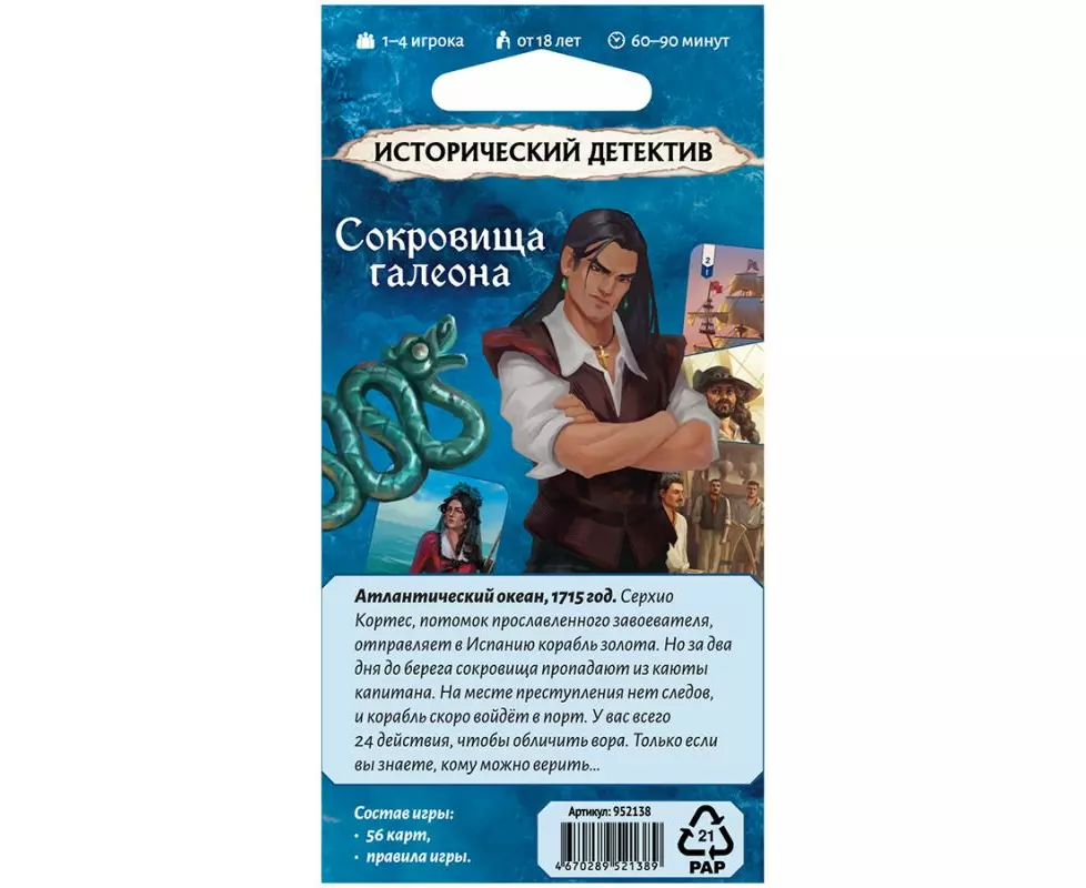 Атлантический океан, 1715 год. Серхио Кортес, потомок прославленного завоевателя, отправляет в Испанию корабль золота. Но за два дня до берега сокровища пропадают из каюты капитана. На месте преступления нет следов, и корабль скоро войдёт в порт. У вас всего 24 действия, чтобы обличить вора. Если только вы знаете, кому можно верить…