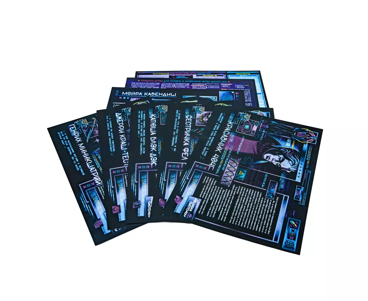 Лаконично изложенные правила игры «Кадат», бережно адаптированные под жанр, чтобы позволить игрокам и их героям погрузиться в ту самую атмосферу high tech & low life.